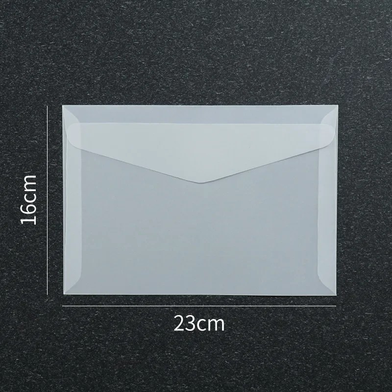 Pagina iniziale Pagina iniziale Casa e articoli domestici Articoli per ufficio Set di 50 buste trasparenti 23 x 16 cm carta semitrasparente chiusura autoadesiva buste per biglietti d'auguri inviti