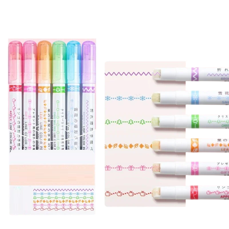 La speciale punta a timbro garantisce una traccia uniforme e continua senza la necessità di premere costantemente. I motivi si ripetono in un ritmo regolare, dando un aspetto pulito ed estetico. Le penne sono adatte per appunti scolastici, trascrizioni manuali di testi, scrittura creativa, evidenziazione dei margini e decorazione di biglietti d'auguri. Con una lunghezza di 13 cm, si impugnano bene e permettono una tracciatura precisa.
