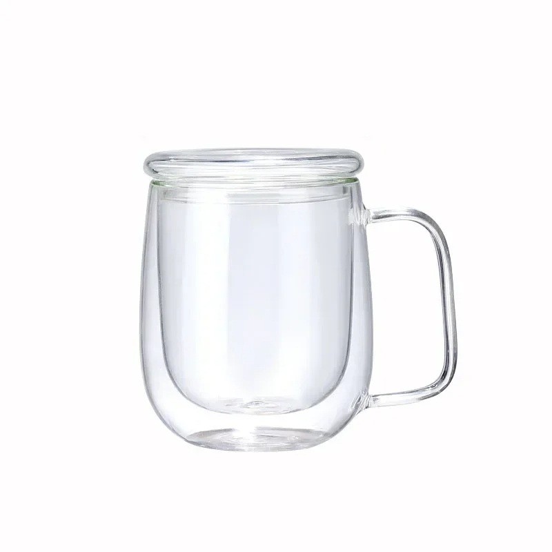Set di 6 tazze in vetro con doppia parete 250 ml 10,5 x 7,5 cm Tazze termiche resistenti al calore con manico quadrato e coperchio Bicchieri termici per tè, caffè