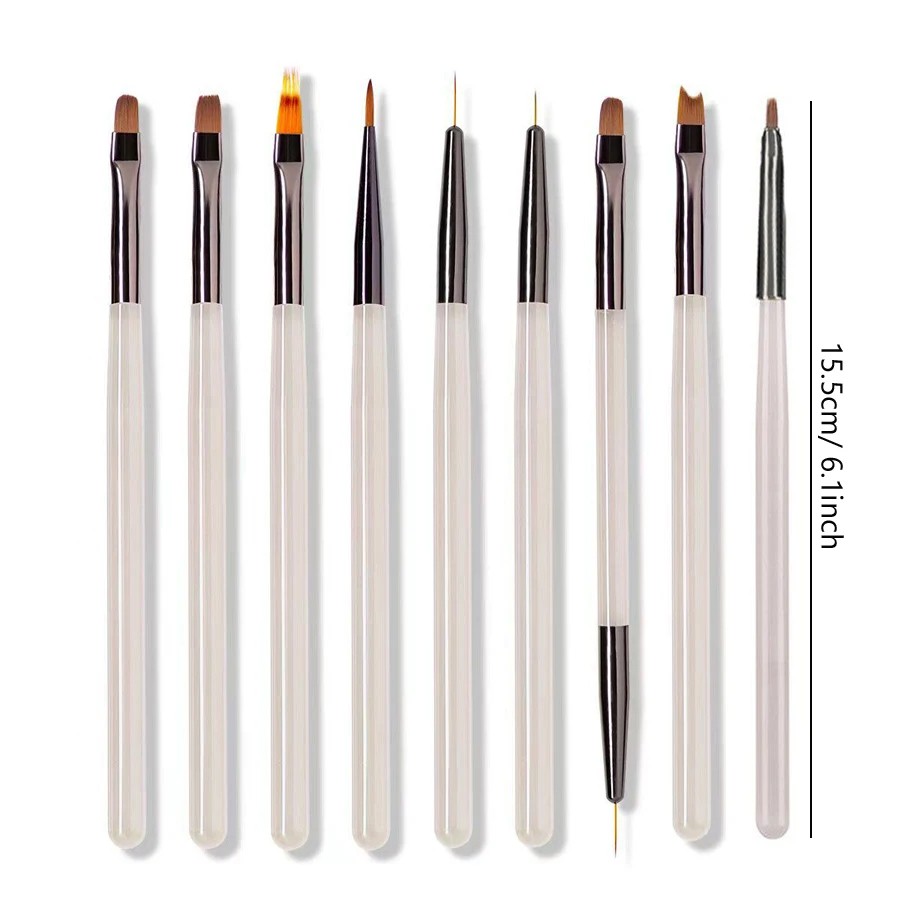 • Il set completo include 9 diversi pennelli per decorazioni dettagliate delle unghie