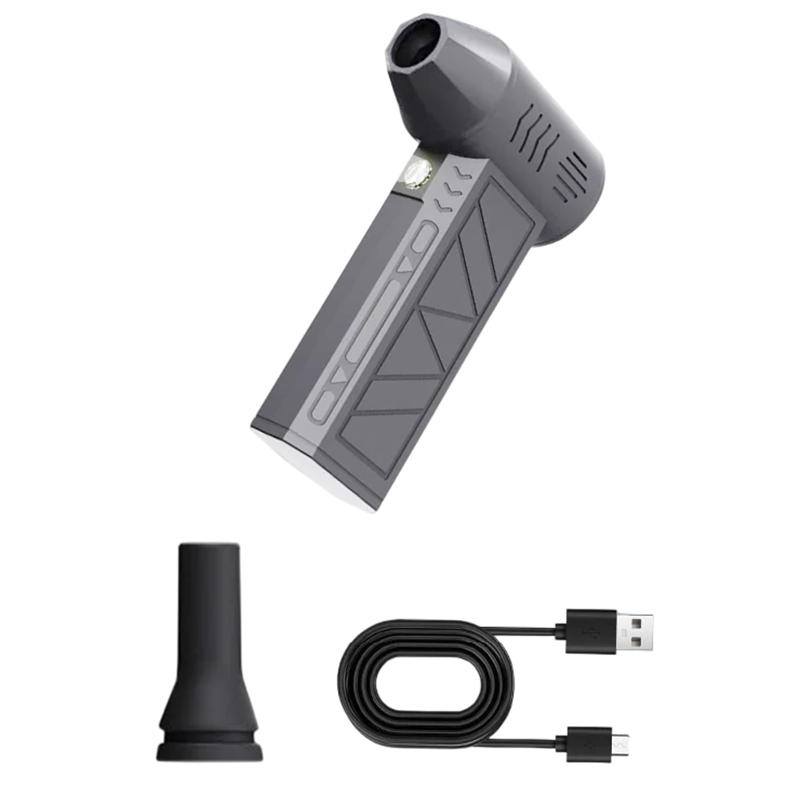 Set multifunzionale con potente mini soffiaggio e aspiratore, motore senza spazzole, ricarica USB-C e 3 velocità per una pulizia efficace. Descrizione completa