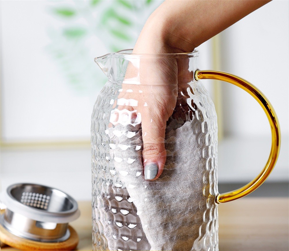 Contiene una teiera in vetro e quattro bicchieri con delicate righe.