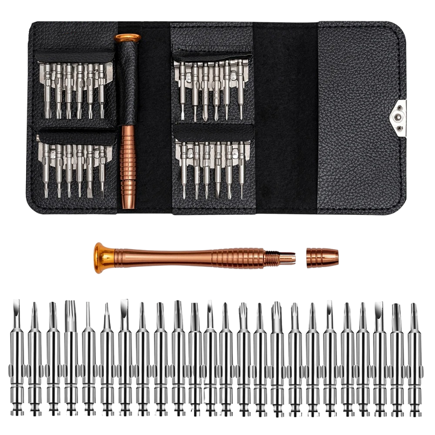 Set di cacciaviti per meccanica fine da 25 pz, ideale per riparazioni di elettronica, orologi, occhiali e telefoni. Descrizione completa