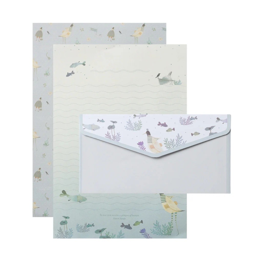 Pagina iniziale Pagina iniziale Casa e articoli domestici Articoli per ufficio Set di carta da lettera e buste 14 x 21 cm 6 fogli di carta 8,5 x 16,5 cm 3 buste mare pesci uccelli set di scrittura blu