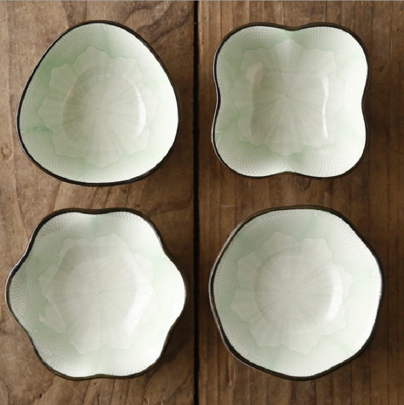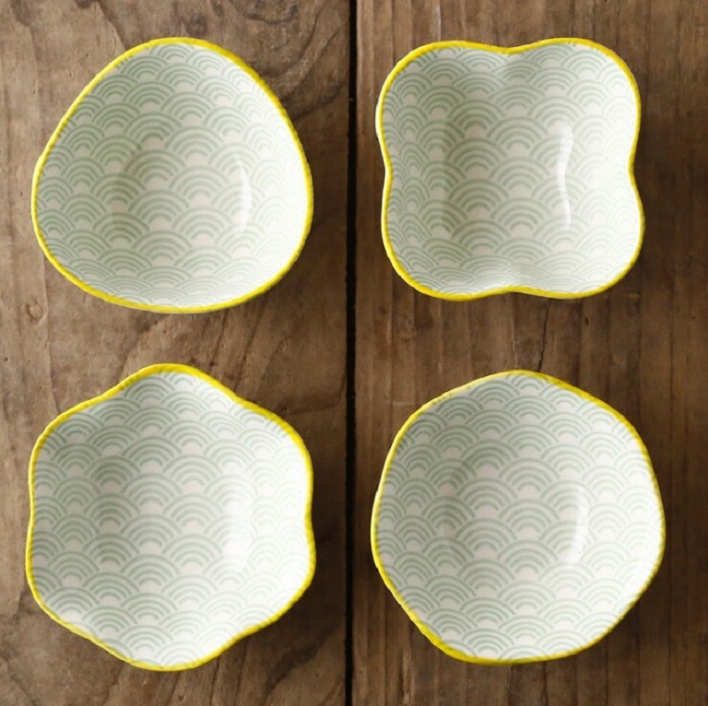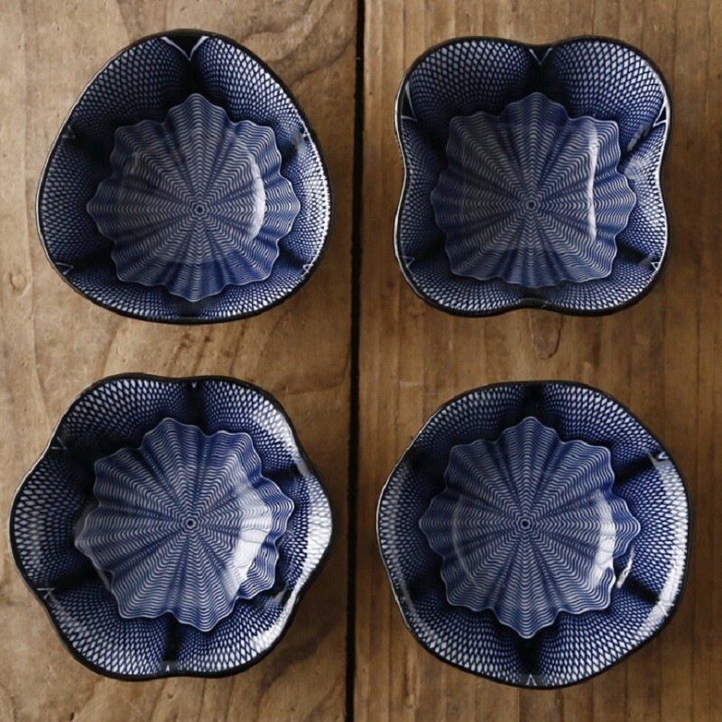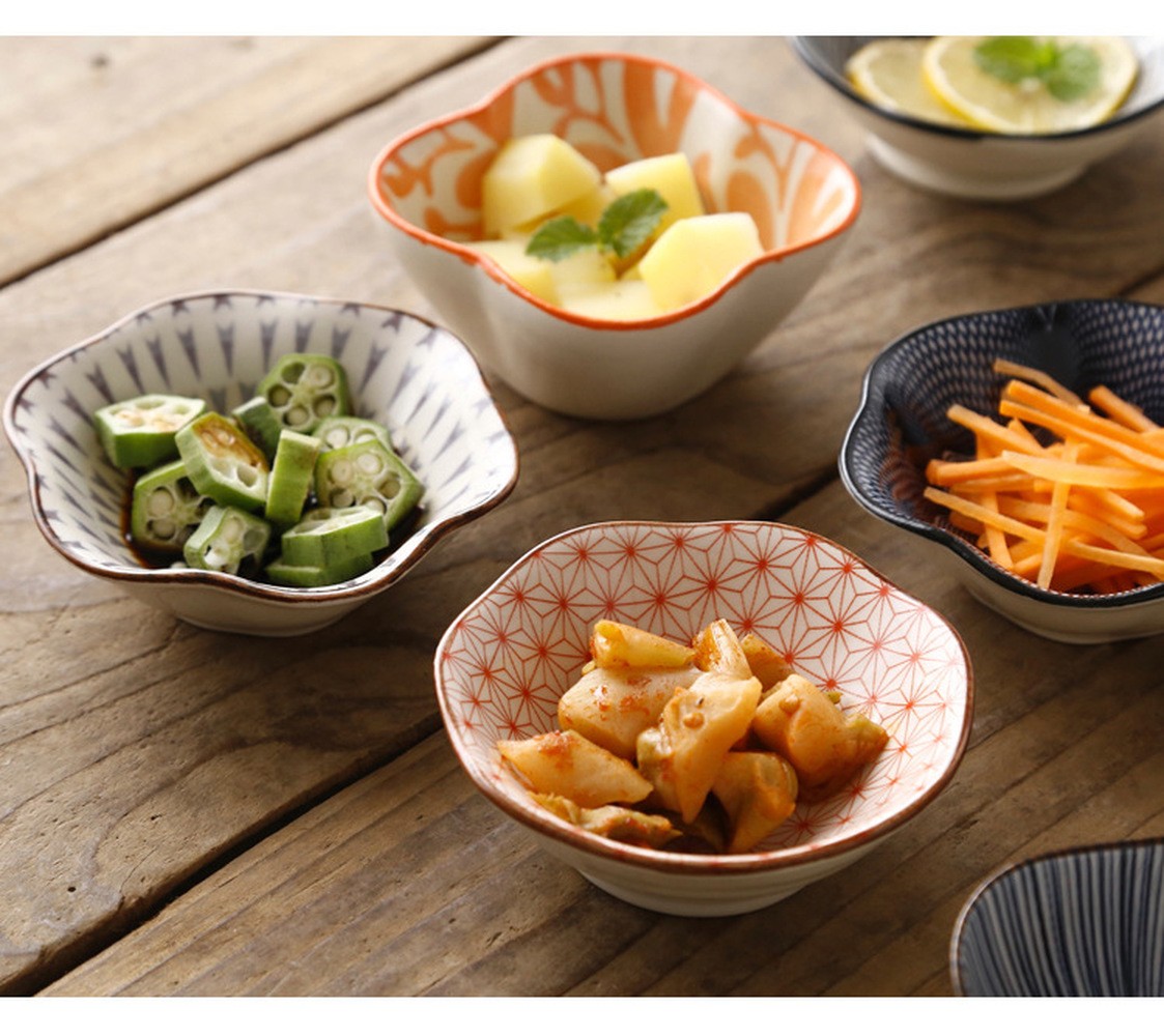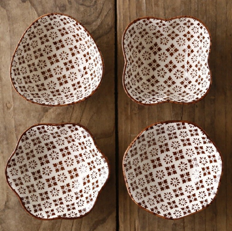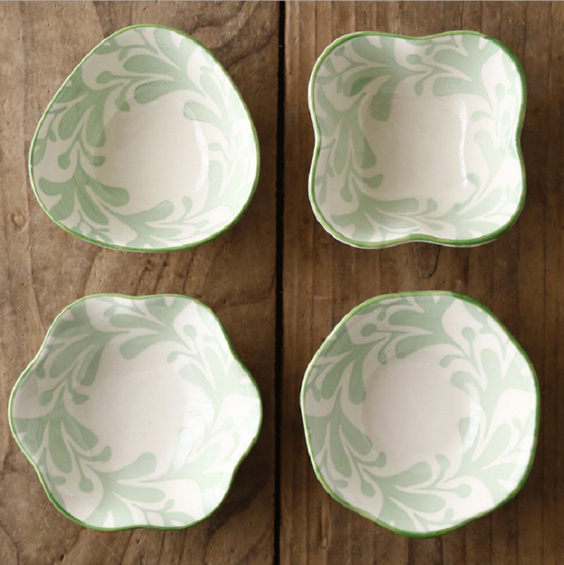 Ciotole sagomate con ornamenti dipinti.