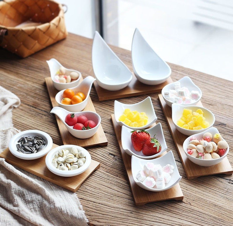 Set di ciotole in porcellana con vassoio 3 pz