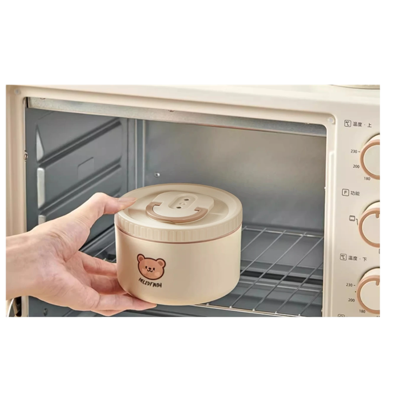 Questo adorabile set di due contenitori termici per il pranzo con motivo orsetto è la soluzione ideale per bambini e adulti che vogliono gustare un pasto sano e fatto in casa ovunque e in qualsiasi momento. Entrambi i contenitori – uno da 400 ml e l'altro da 600 ml – sono realizzati in acciaio inossidabile di alta qualità e dotati di isolamento termico interno, che mantiene il cibo caldo o freddo per lungo tempo. Le chiusure ermetiche sono completamente impermeabili, quindi puoi portare i contenitori in sicurezza nello zaino o nella borsa. Il set include anche una pratica borsa per il trasporto, un cucchiaio in acciaio inox, bacchette e una copertura per le posate, rendendo questo set un completo perfetto per l'uso quotidiano a scuola, lavoro e durante le gite.