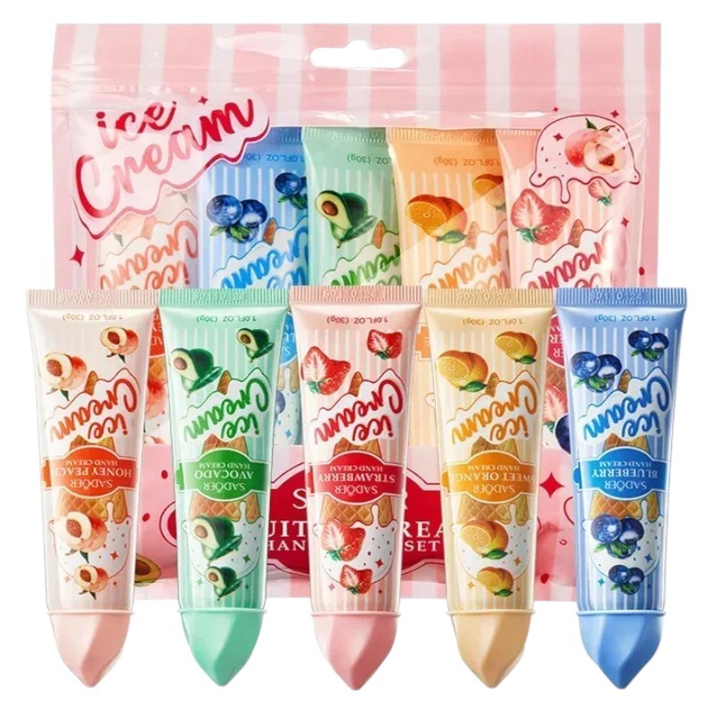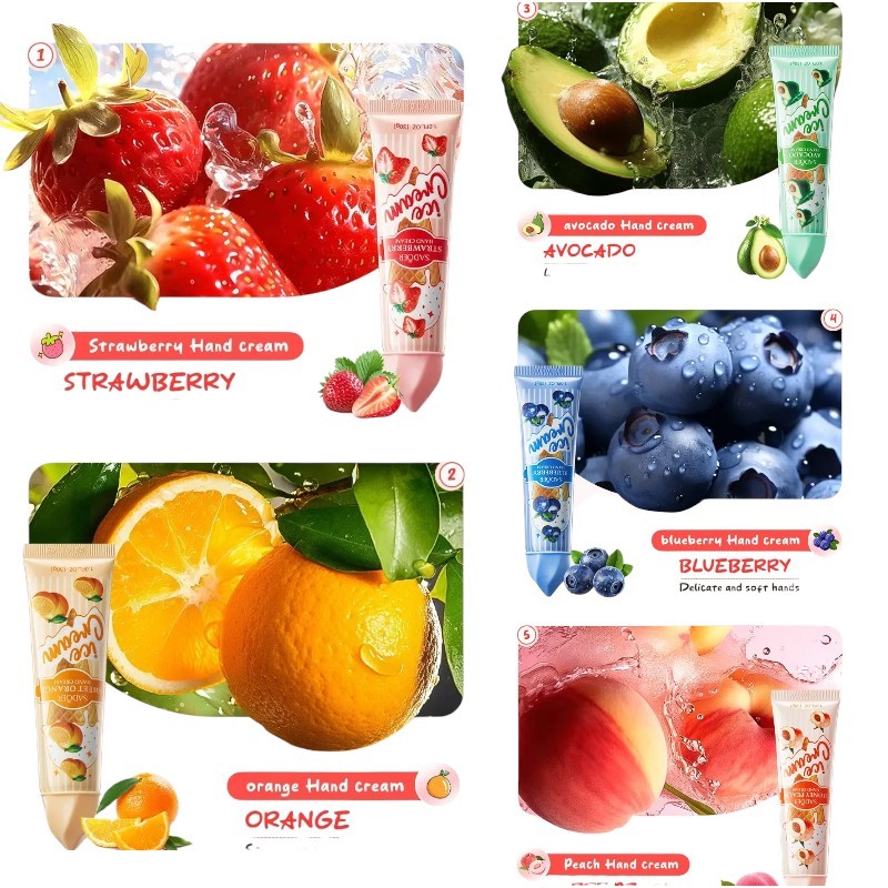 Set di creme per le mani 5 pz 30 g Cura Idratante Illuminante Profumi Fruttati Arancia Fragola Mirtillo Avocado Pesca