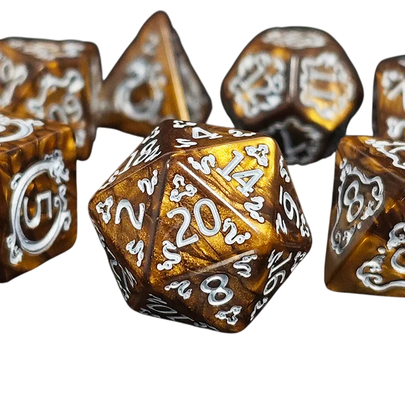 Questo set di dadi è destinato a tutti i giocatori che si muovono nel mondo del fantasy, dei giochi da tavolo e degli RPG. Contiene 7 pezzi di dadi poliedrici, che costituiscono l'attrezzatura standard per giochi come Dungeons & Dragons, altri sistemi di gioco di ruolo e vari giochi da tavolo. Grazie alla composizione classica dei dadi, il set è universale e adatto sia ai principianti che ai giocatori esperti. I dadi sono progettati per adattarsi bene alla mano e per essere facilmente leggibili ad ogni lancio.