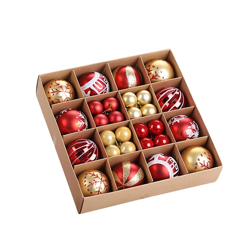 Il set di 44 pezzi di decorazioni natalizie è un accessorio indispensabile per chiunque voglia diffondere l'atmosfera festiva! Il set è confezionato in una scatola resistente di dimensioni 24,5 x 24,5 x 6 cm. Quindi non esitate e ordinate il vostro set di 44 pezzi di decorazioni natalizie ancora oggi!