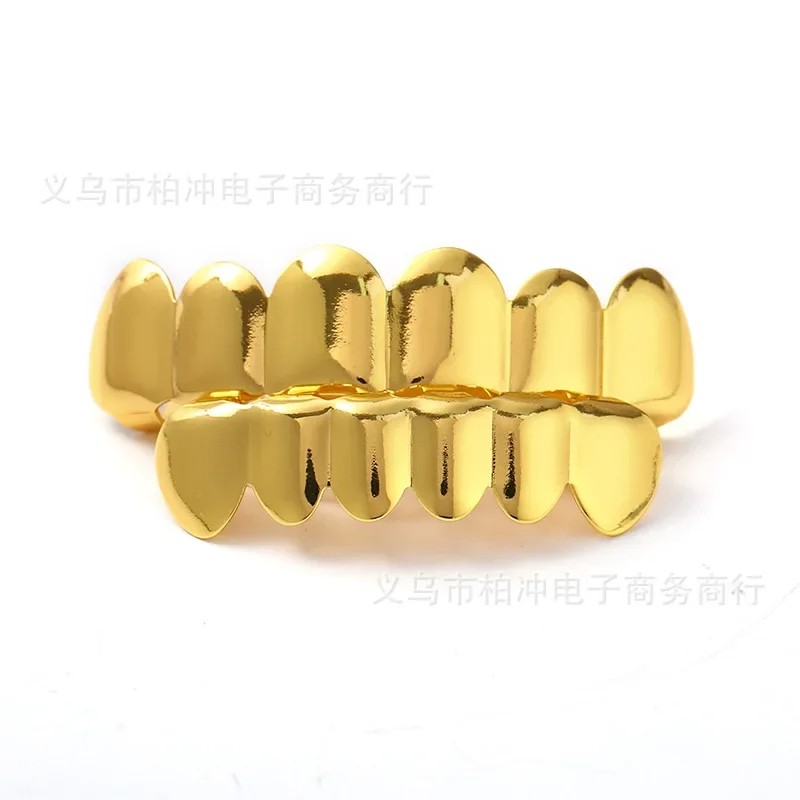 Pagina iniziale Pagina iniziale Salute e bellezza Cura dei denti Set di grillz hip hop dorati per denti superiori e inferiori con finitura lucida Personalizzazione in silicone Gioielli dentali per uomini e donne Accessorio per costumi
