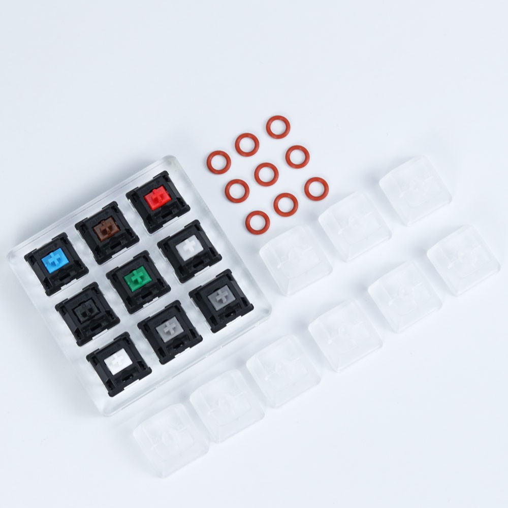 • variante 3: Gateron (blu, marrone, rosso, nero, giallo, trasparente, verde, rosso silenzioso, marrone silenzioso)