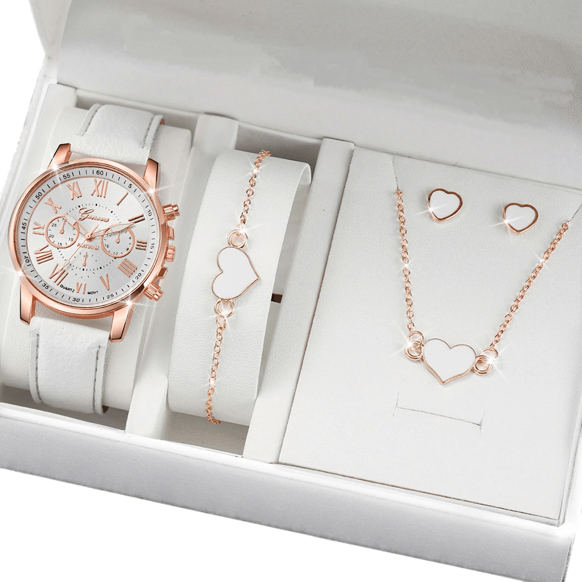Set di lusso per donne che include orologi da donna, collana, bracciale e orecchini a forma di cuore. Regalo perfetto per ogni occasione. Descrizione completa