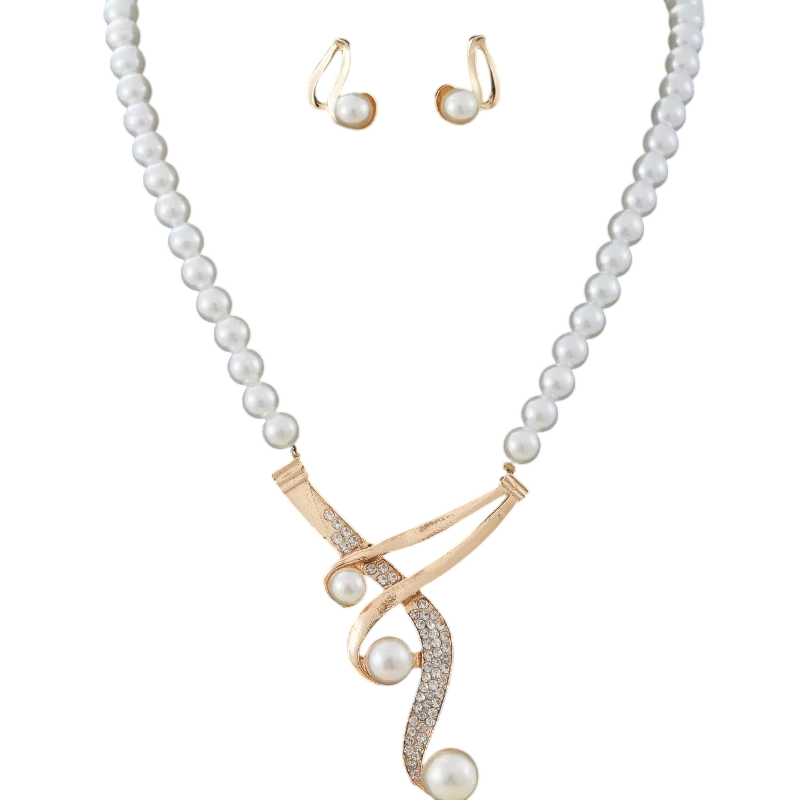 Elegante set di perle con catena di estensione e delicati orecchini che evidenziano la femminilità. Ideale come regalo anche per occasioni festive. Descrizione completa
