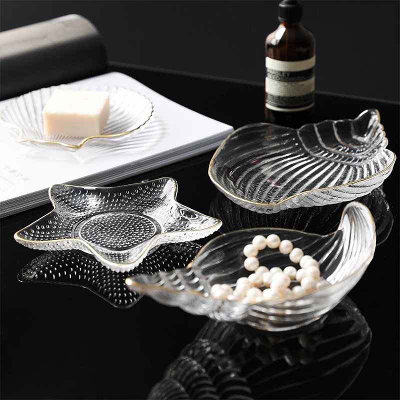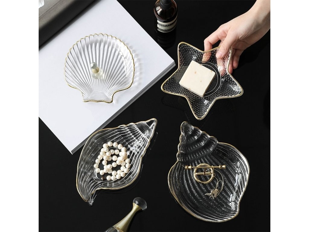 Il set include piatti decorativi a forma di stella marina e tre tipi di conchiglie.