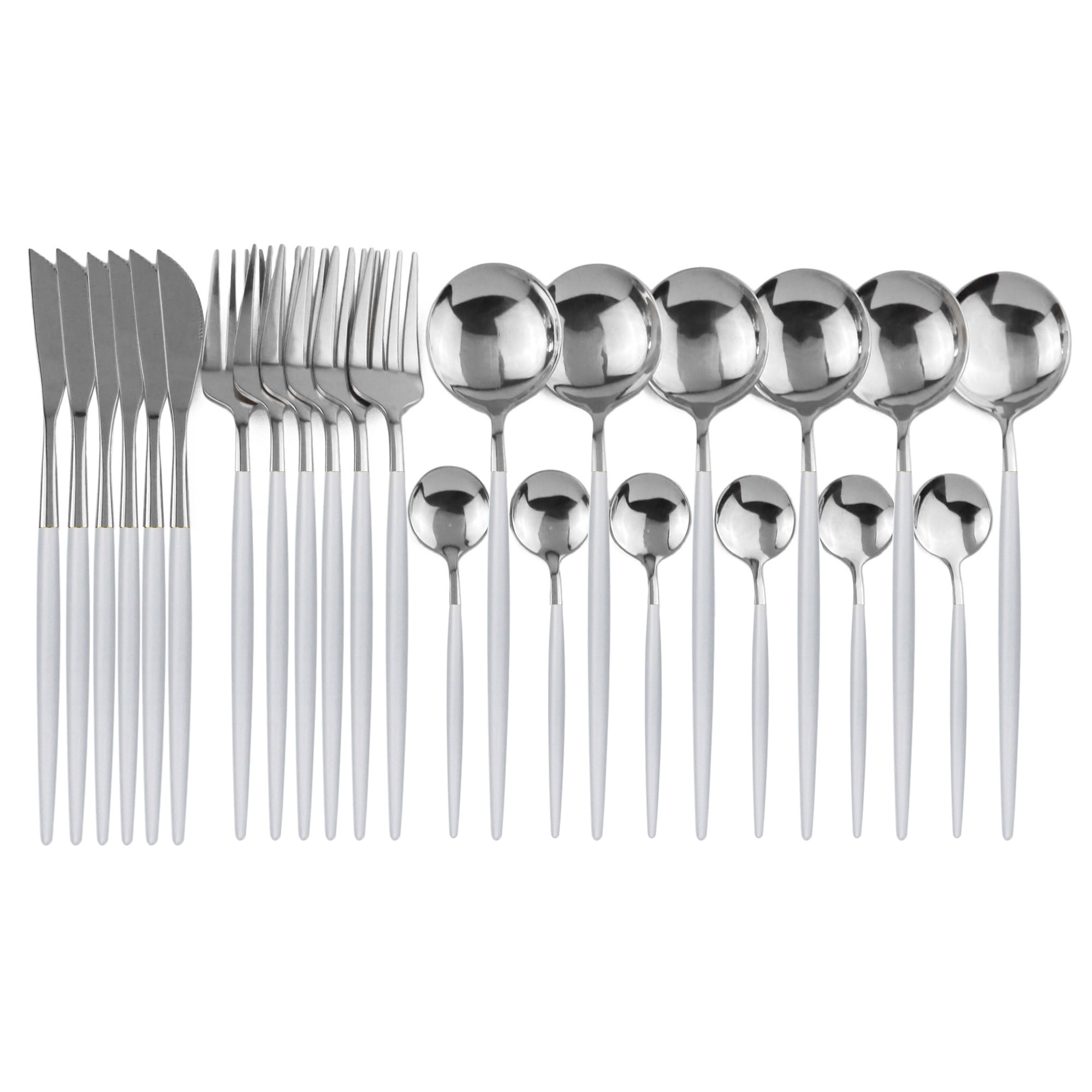 Contenuto della confezione: 24 pz - 6 pz cucchiaio, 6 pz forchetta, 6 pz coltello, 6 pz cucchiaino
