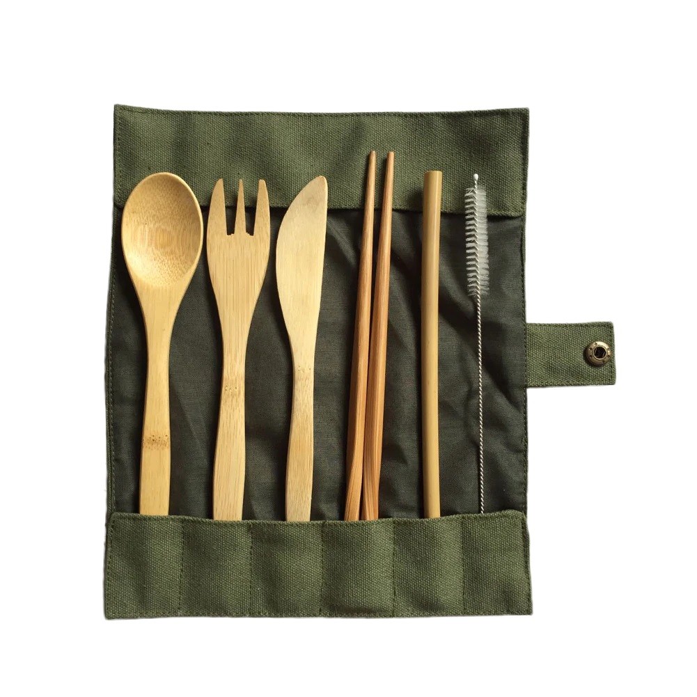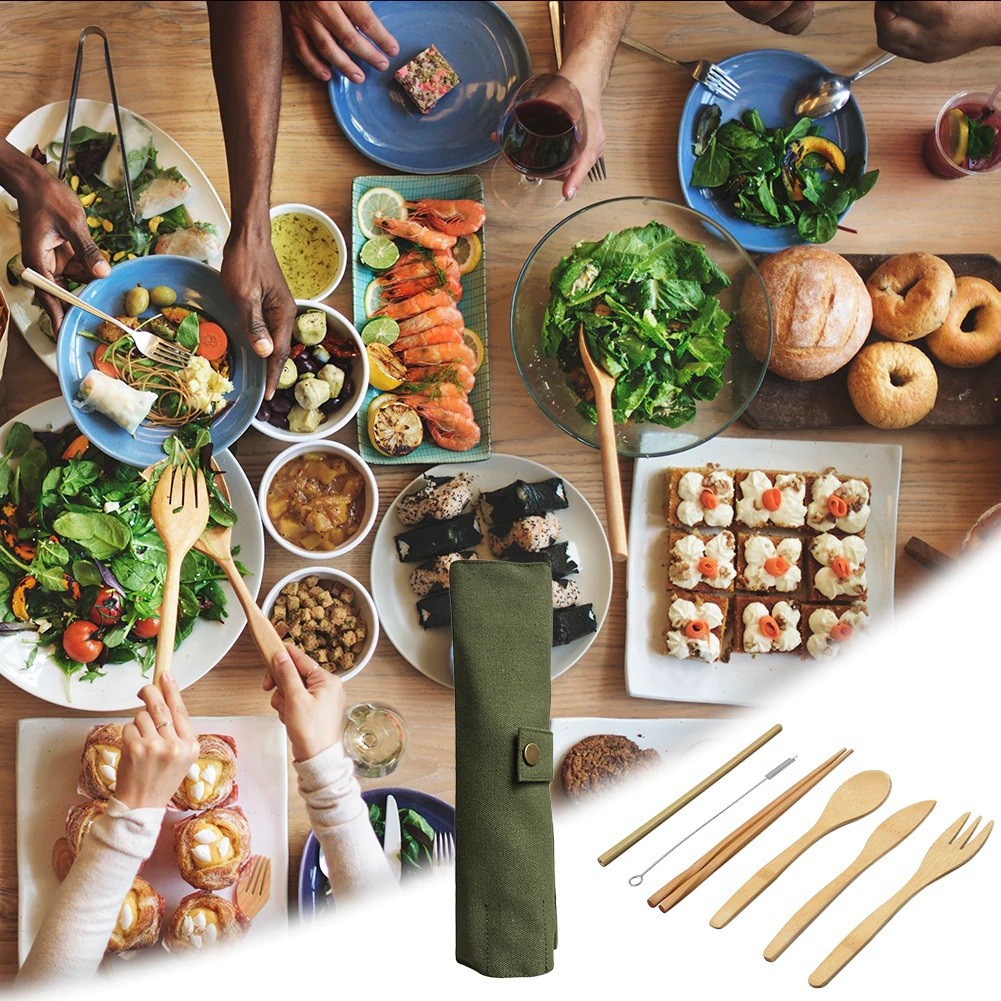 Set di posate in bambù da viaggio - 6 pezzi + astuccio
