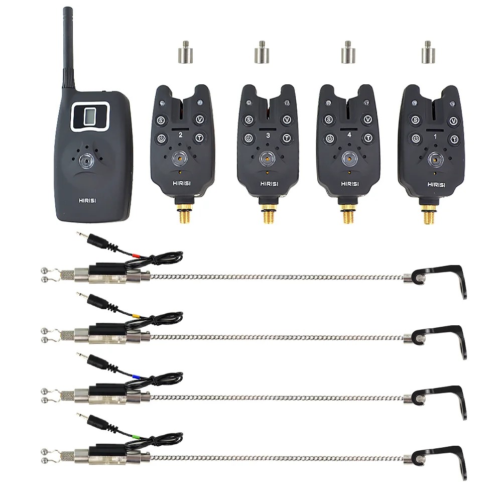 Pagina iniziale Pagina iniziale Sport e outdoor Pesca Set di segnalatori di abboccata wireless 1 + 4 con swinger LED retroilluminati segnalazione acustica Ricevitore custodia EVA