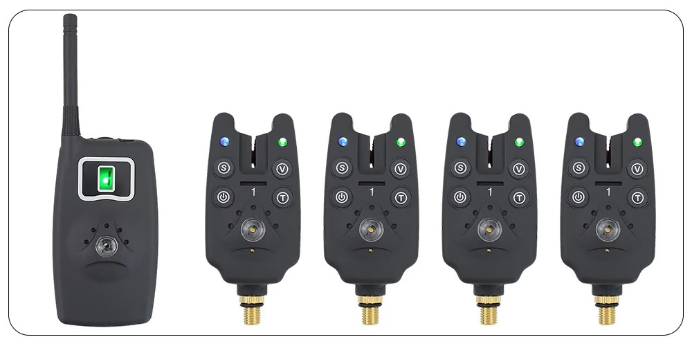 Set wireless di segnalatori di abboccata con ricevitore e quattro swinger retroilluminati offre controllo acustico e luminoso dell'abboccata. Descrizione completa