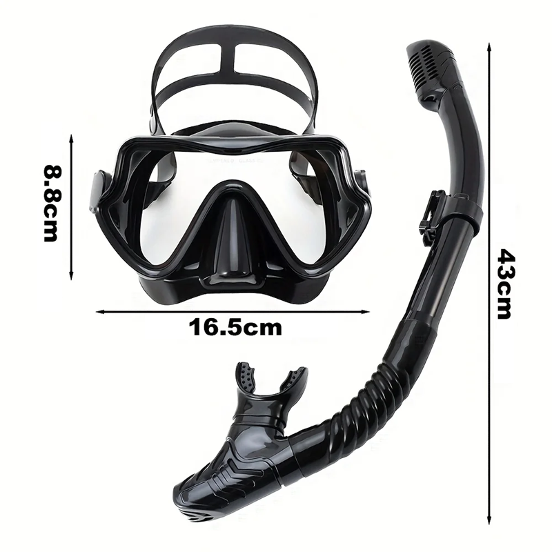 Set di Snorkeling Occhiali 16,5 x 8,8 cm con Guarnizione in Silicone Vetro Temperato Snorkel 43 cm con Valvola Attrezzatura Subacquea
