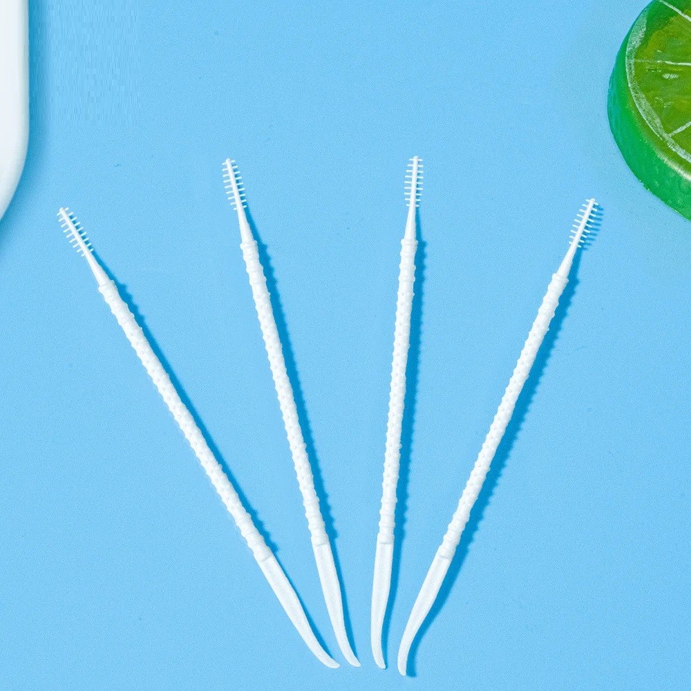 Questo set di spazzolini dentali è progettato per la cura quotidiana dell'igiene orale e la pulizia degli spazi interdentali. Ogni pezzo ha una costruzione 2in1, in cui un lato contiene un pennello pulente e l'altro un gancio curvo. Gli strumenti sono conservati in una pratica scatola di plastica con coperchio.