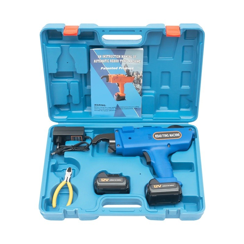 Istruzioni per l'uso: Inserire la batteria carica nella parte inferiore del manico, accendere l'apparecchio con l'interruttore principale e posizionare la testa di legatura sull'incrocio delle barre d'acciaio. Premendo il grilletto si attiva il serraggio automatico, la torsione e il taglio del filo. Al termine, lo strumento è immediatamente pronto per una nuova legatura. Durante il lavoro, si consiglia di controllare regolarmente lo stato del filo e della batteria.