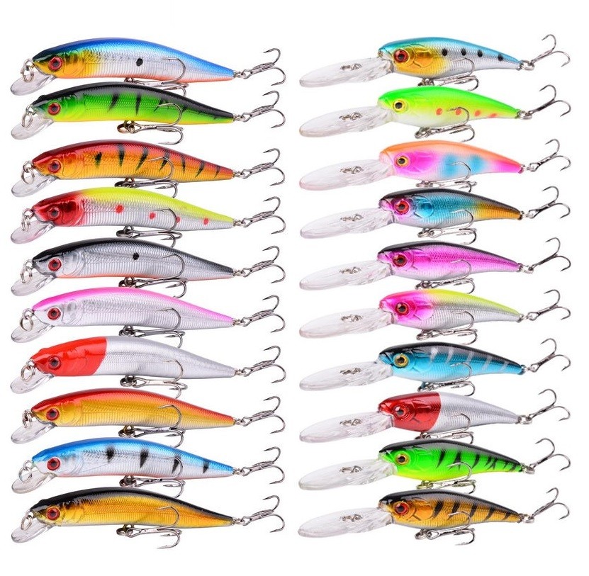 Set di wobblers da pesca per la cattura dei pesci. In due dimensioni - wobblers lunghi 10 cm e 9,5 cm. Versione galleggiante. Perfetto per la tecnica di pesca a spinning. Grazie alla forma è adatto anche per la pesca a grandi distanze. Perfetto per acqua salata e dolce.