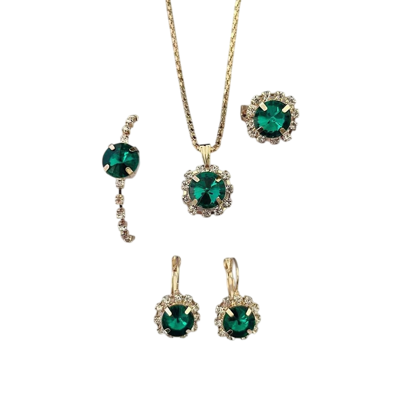 Questo set di gioielli è la scelta perfetta per le donne che vogliono apparire curate e sicure in ogni situazione. La combinazione complessiva di quattro gioielli crea un effetto completo e distintivo, che mette in risalto l'outfit senza necessità di ulteriori accessori. Grazie allo stile universale, può essere utilizzato per lavoro, incontri e eventi serali. Se stai cercando un set moda che unisca praticità, eleganza e un aspetto attraente, questo set sarà l'accessorio ideale per la tua gioielleria.