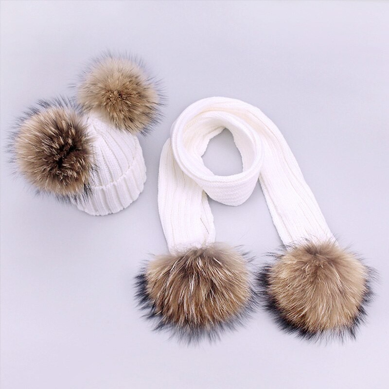 Set invernale per bambini con berretto e sciarpa con pompon