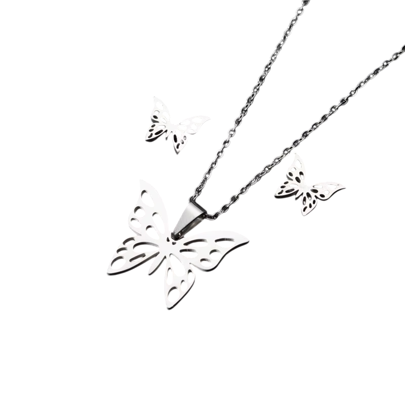 Set metaforico di orecchini e collana 45 cm Acciaio inossidabile Farfalle Gioiello da spiaggia estivo regalo per donne e ragazze
