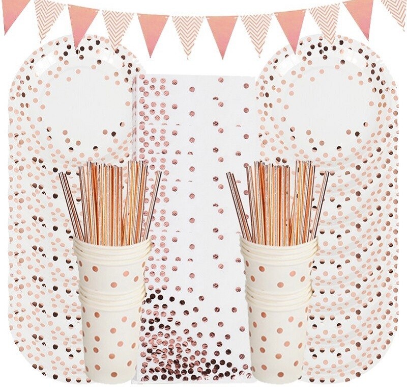 Contenuto della confezione: 16x bicchiere, 16x piatto, 25x cannuccia, 20x tovagliolo, 1x striscione