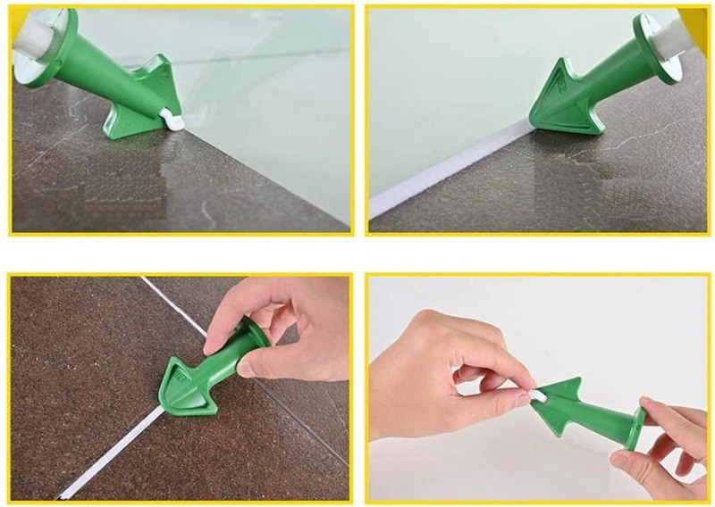 Non sarà mai più necessario fare tanto lavoro per le fughe. Con questo set puoi facilmente rifinire la sezione desiderata e allo stesso tempo livellarla. Due lavori in un solo movimento. L'adattatore è progettato in modo che il silicone o il sigillante venga rilasciato sul retro e la parte anteriore livelli il materiale. Puoi impostare la forma secondo 3 angoli degli adattatori. Il set include anche un tappo per la bottiglia di sigillante, che puoi utilizzare anche per livellare il materiale. L'ultimo elemento del set è una spatola per rimuovere il materiale indurito dalle fughe.
