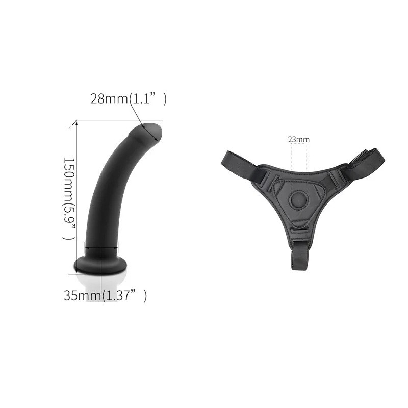 Il set include un'ottima imbracatura strap-on in pelle artificiale premium e un dildo in silicone a forma di pene di 15 cm di lunghezza. L'imbracatura è progettata per il massimo comfort e un fissaggio sicuro, mentre il dildo offre un'esperienza realistica grazie al silicone morbido e flessibile, che è anche abbastanza resistente per un uso confortevole.