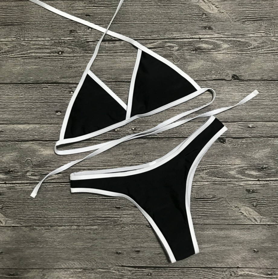 Il reggiseno triangolare essenziale mette in risalto il tuo décolleté, mentre le semplici mutandine modellano splendidamente il fondoschiena e gli conferiscono la giusta rotondità.