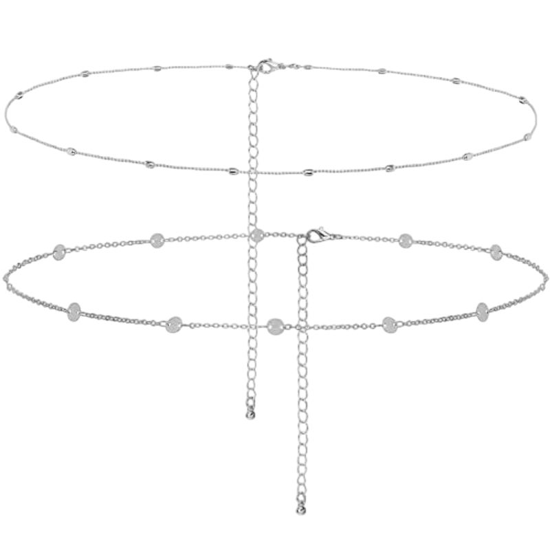 Collana addominale a due strati in finitura argentata che mette in risalto la vita, completa gli outfit estivi e da festival e sottolinea la silhouette femminile. Descrizione completa