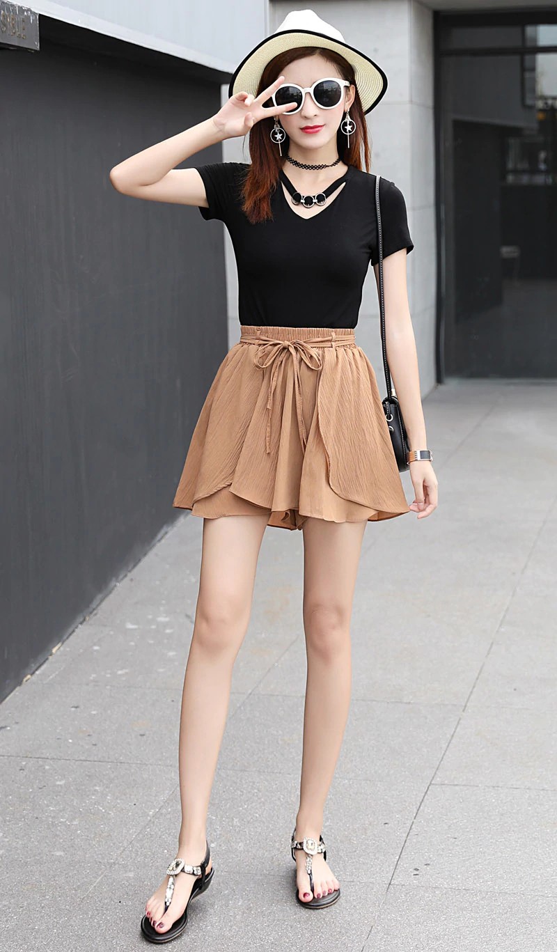 Gli shorts si abbinano bene a una leggera canotta e a dei sandali.
