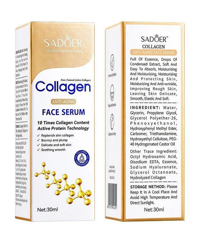 Questo siero al collagene è un'ideale parte della tua routine quotidiana di cura della pelle, che ti aiuterà a ottenere una pelle sana, elastica e perfettamente idratata. Grazie alla combinazione di ingredienti efficaci, aiuta a combattere l'invecchiamento precoce, ripristina l'elasticità naturale della pelle e uniforma il suo tono. Basta applicare alcune gocce di siero sulla pelle pulita e massaggiare delicatamente. Per i migliori risultati, si consiglia di utilizzare ogni mattina e sera prima dell'applicazione della crema idratante. Goditi una pelle lenita, radiosa e giovanile ogni giorno.
