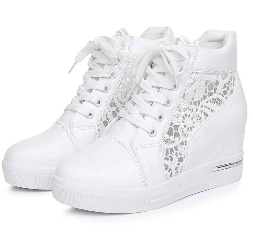 Sneakers con zeppa e pizzo J1094