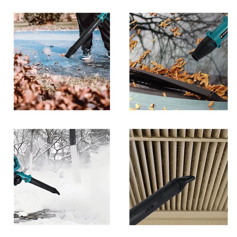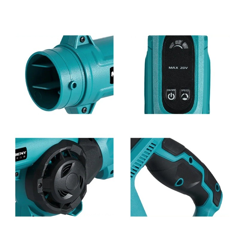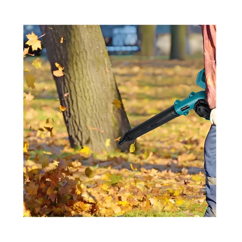 Alimentato da batteria al litio compatibile con Makita 18V, che non è inclusa nella confezione. La costruzione del soffiatore è progettata in modo da poter utilizzare il dispositivo sia come soffiatore portatile tradizionale che come strumento per la pulizia precisa di piccole aree o attrezzi.