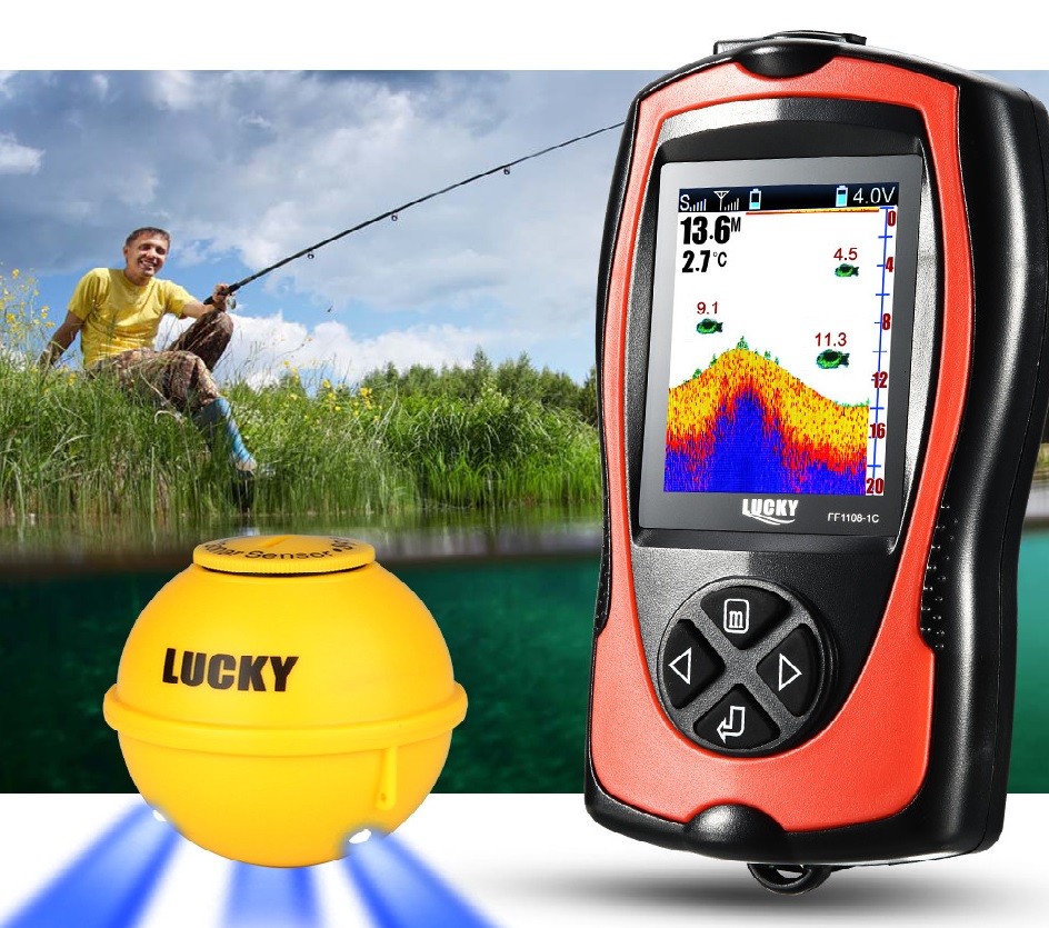 Sonar con sonda senza fili da lancio, in grado di rilevare il movimento dei pesci fino a 60 m di distanza e 45 m di profondità.