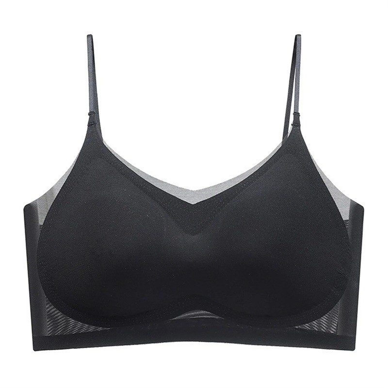 Sottile reggiseno senza cuciture con spalline sottili e coppe perforate in nylon ed elastan senza ferretto per uso quotidiano