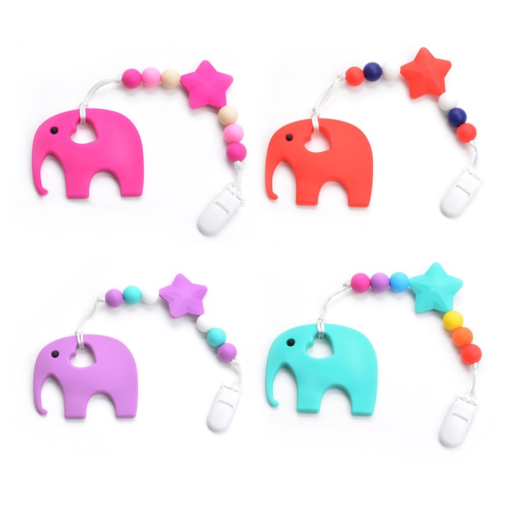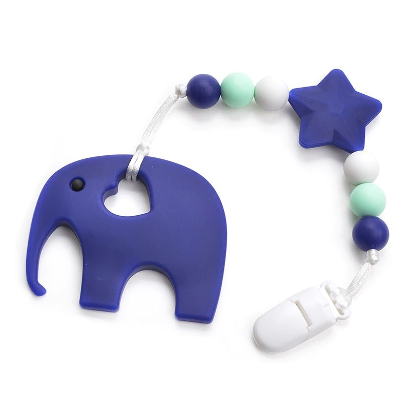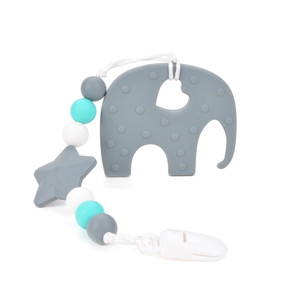 Sottiletta in silicone a forma di elefante con catena sarà apprezzata da tutti i bambini piccoli.