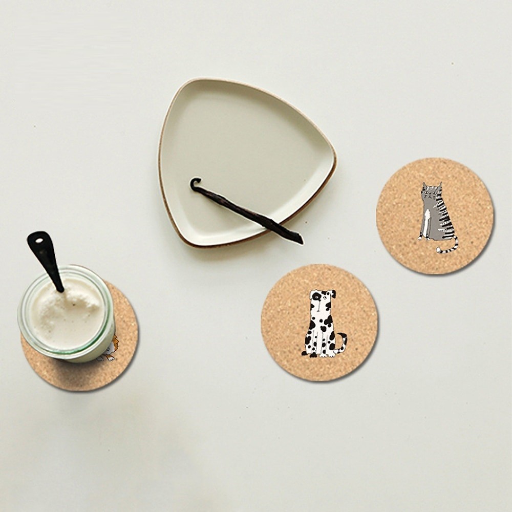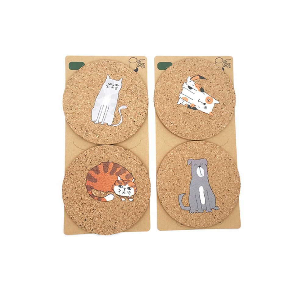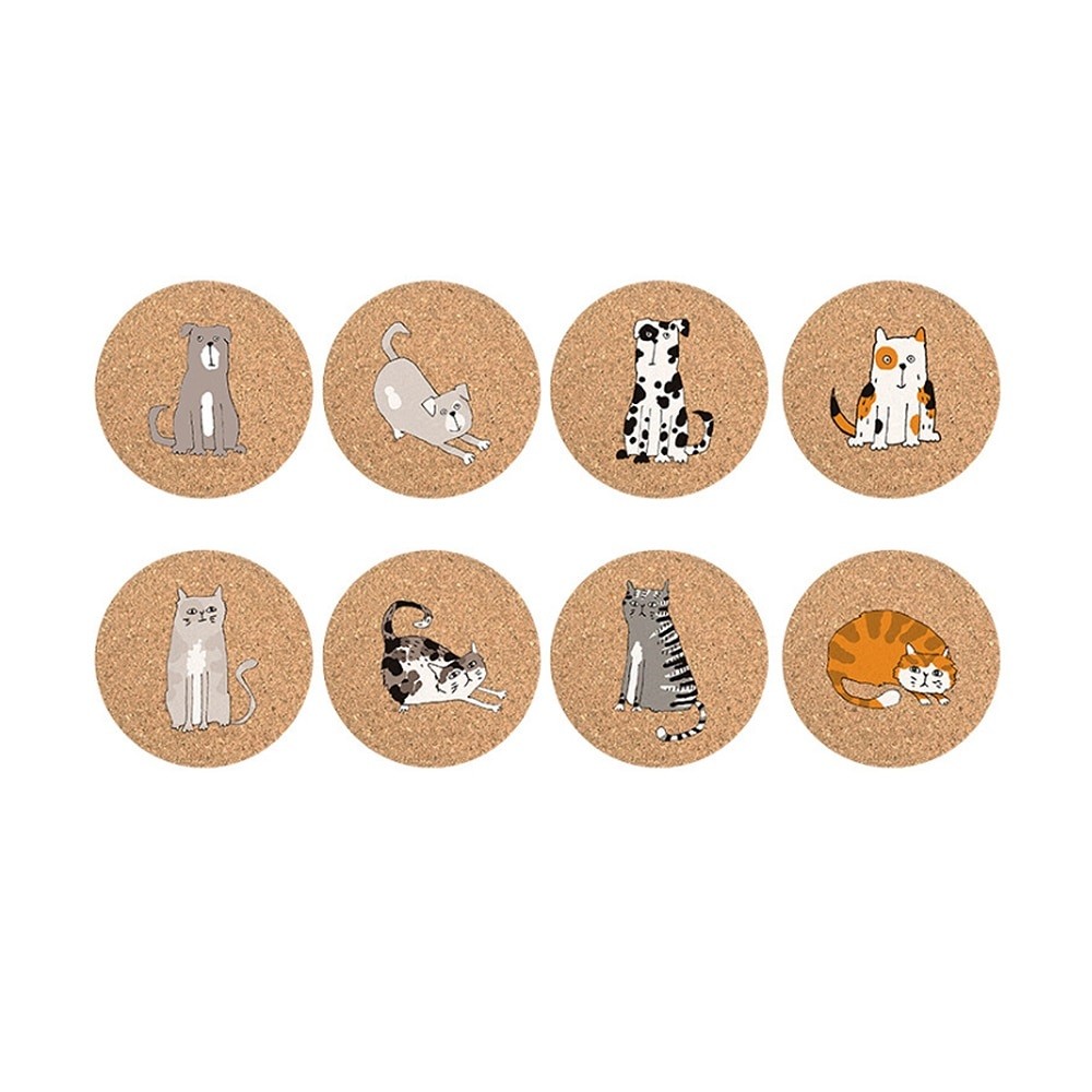 Sottobicchieri in sughero con gatto e cane 2 pz