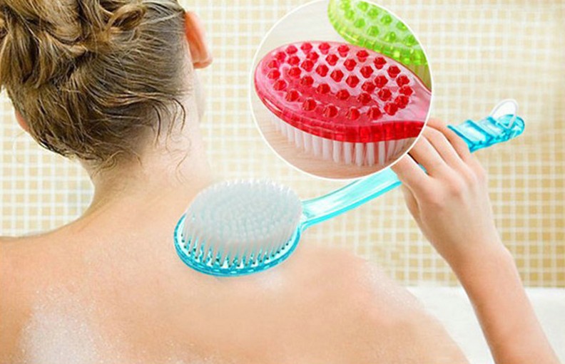 Spazzola da massaggio con manico lungo per un facile lavaggio delle parti posteriori del corpo.