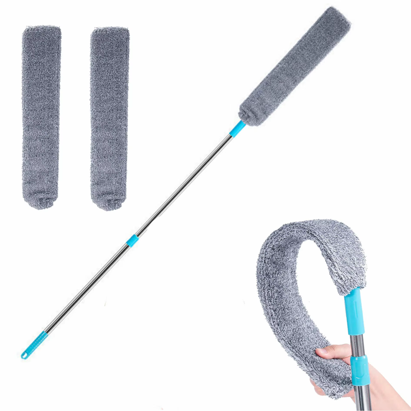 Spazzola per la polvere retrattile in microfibra con manico telescopico 91–137 cm Testa flessibile Pulizia sotto gli elettrodomestici e i mobili Pulizia domestica