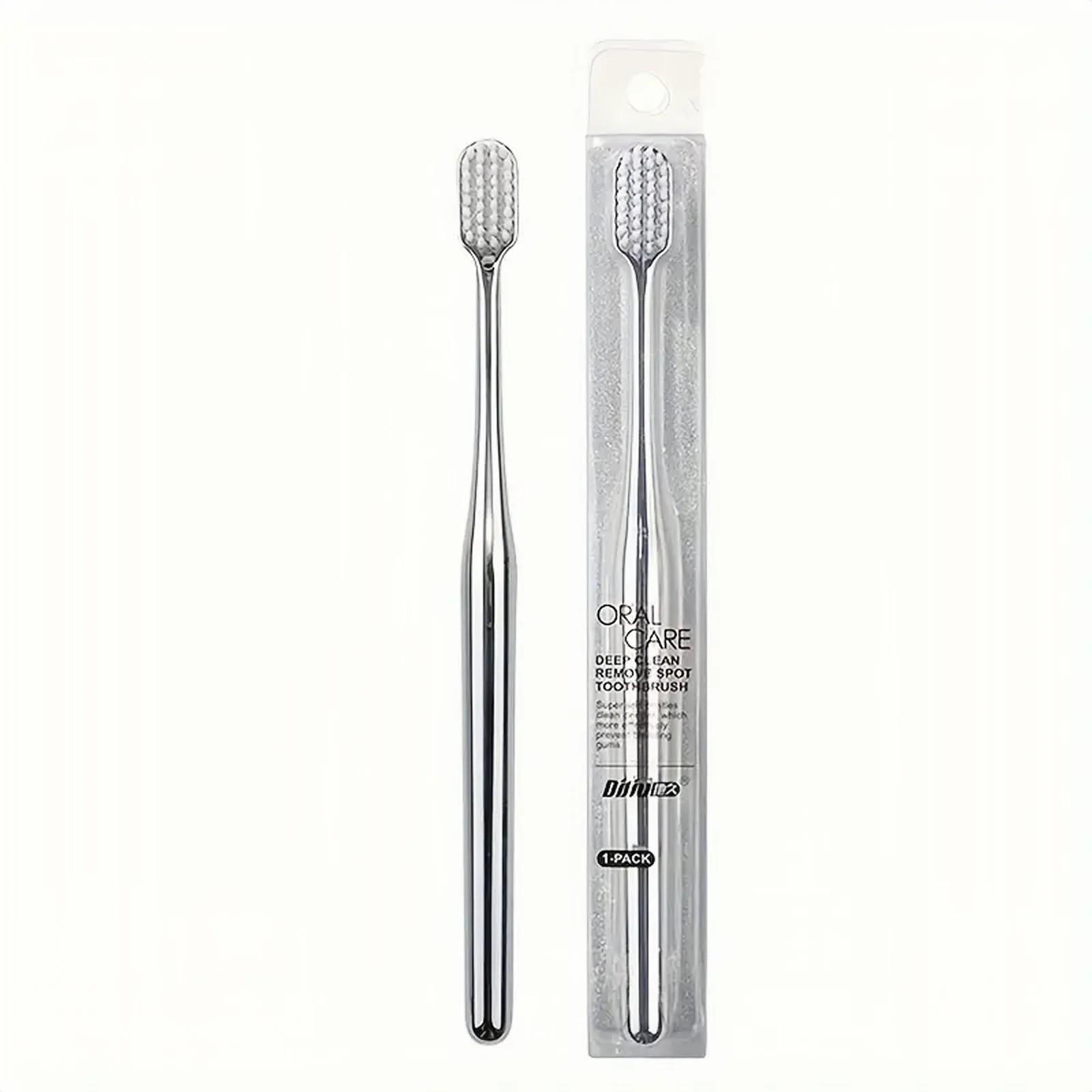 Spazzolino da denti manuale argento per adulti Soft setole morbide Spazzolino per denti e gengive sensibili Spazzolino manuale per l'igiene quotidiana