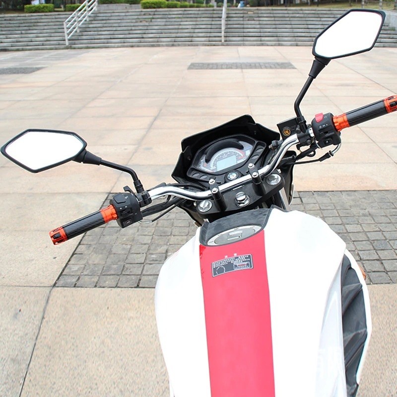 Pratici specchi retrovisori per motocicli e scooter in versione universale con possibilità di scelta tra due tipi di filettatura – 8 mm o 10 mm. Gli specchi sono compatibili con la maggior parte delle moto e scooter comuni disponibili sul mercato.