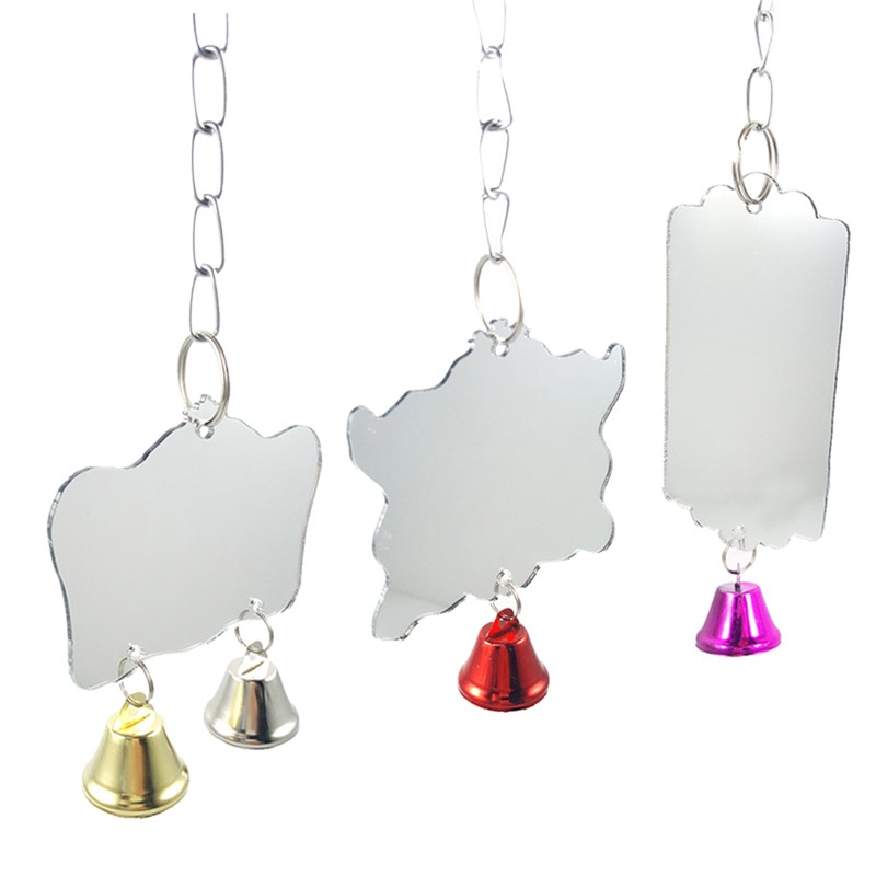 Questo specchietto in ferro con campanelli è davvero un ottimo giocattolo per il tuo pappagallo, inseparabile o cocorita.