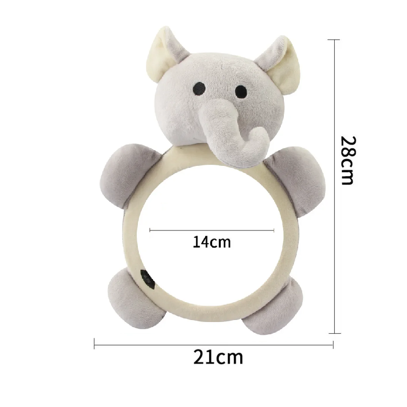 Delizioso e resistente specchio retrovisore per bambini a forma di elefante con ampia visione, facile da montare con cinghie, adatto per la maggior parte delle auto. Descrizione completa