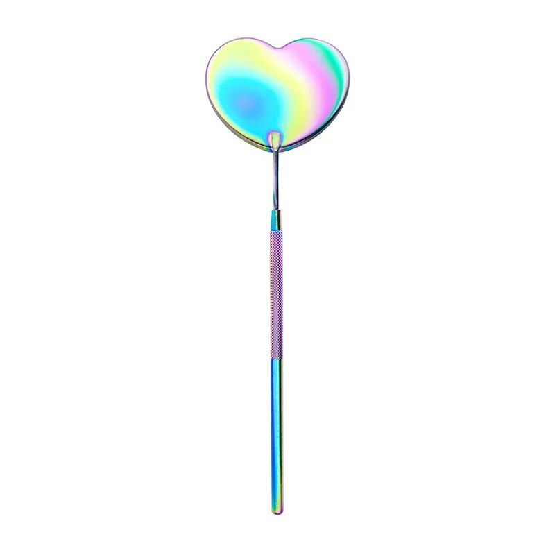 Questo elegante specchio a forma di cuore è l'assistente ideale per controllare l'allungamento delle ciglia, rifinire la zona degli occhi e per un trucco dettagliato. Realizzato in acciaio inossidabile di alta qualità, garantisce lunga durata, resistenza ai graffi e facile manutenzione. La superficie specchiante è pulita, nitida e priva di distorsioni, permettendo un controllo perfetto delle ciglia da diverse angolazioni. Grazie a una presa ergonomica e alle dimensioni compatte di 13,8 x 4,5 x 5,7 cm, è comodo da usare anche durante procedure prolungate. È adatto per estetiste professioniste e per uso domestico.